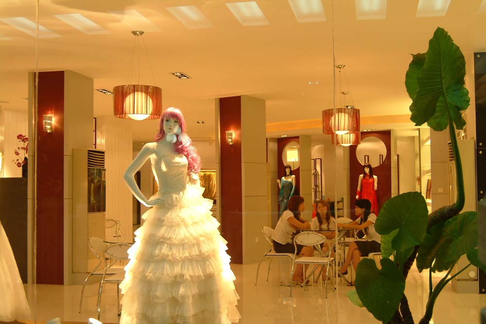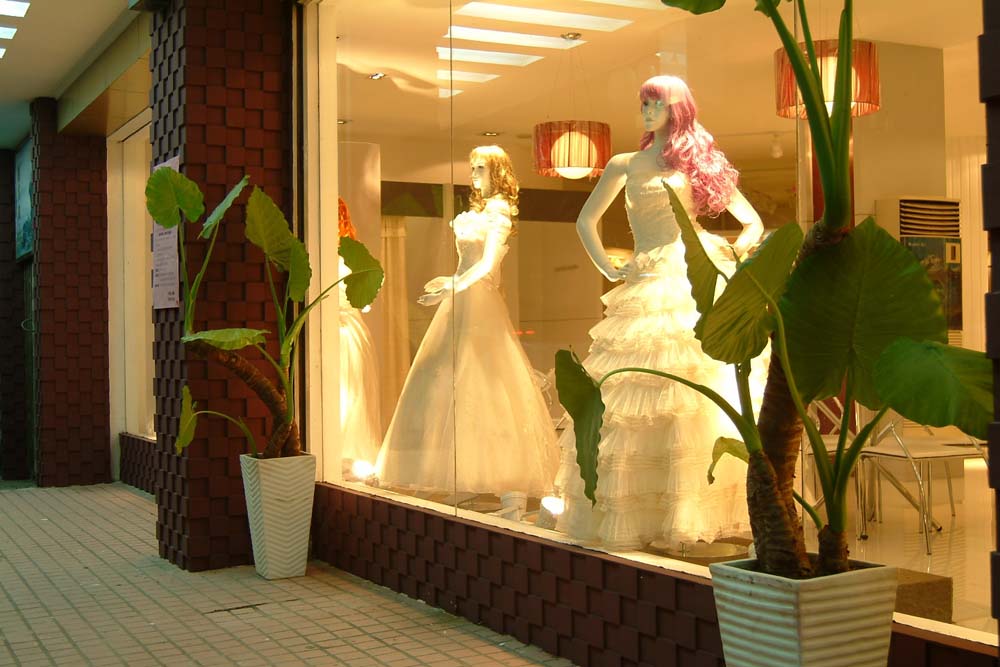 婚紗影樓的櫥窗是影樓的第一展廳,櫥窗就像是小店的“眼睛”,店面這張臉能否吸引住路人,這只“眼睛”可是有舉足輕重的作用。影樓裝修要通過巧用布景、道具及背景畫面裝飾,配以合適的燈光、色彩和最新流行的婚紗禮服,把影樓整體的裝修風格與品位在櫥窗藝術(shù)里得到展現(xiàn)。因為消費者在進入影樓之前,都要有意無意地瀏覽櫥窗,所以,櫥窗的設(shè)計與宣傳對消費者拍攝的選擇有重要影響。